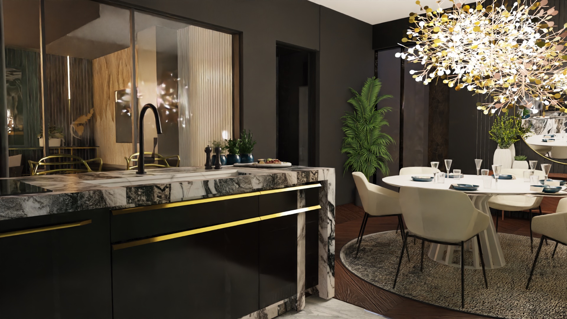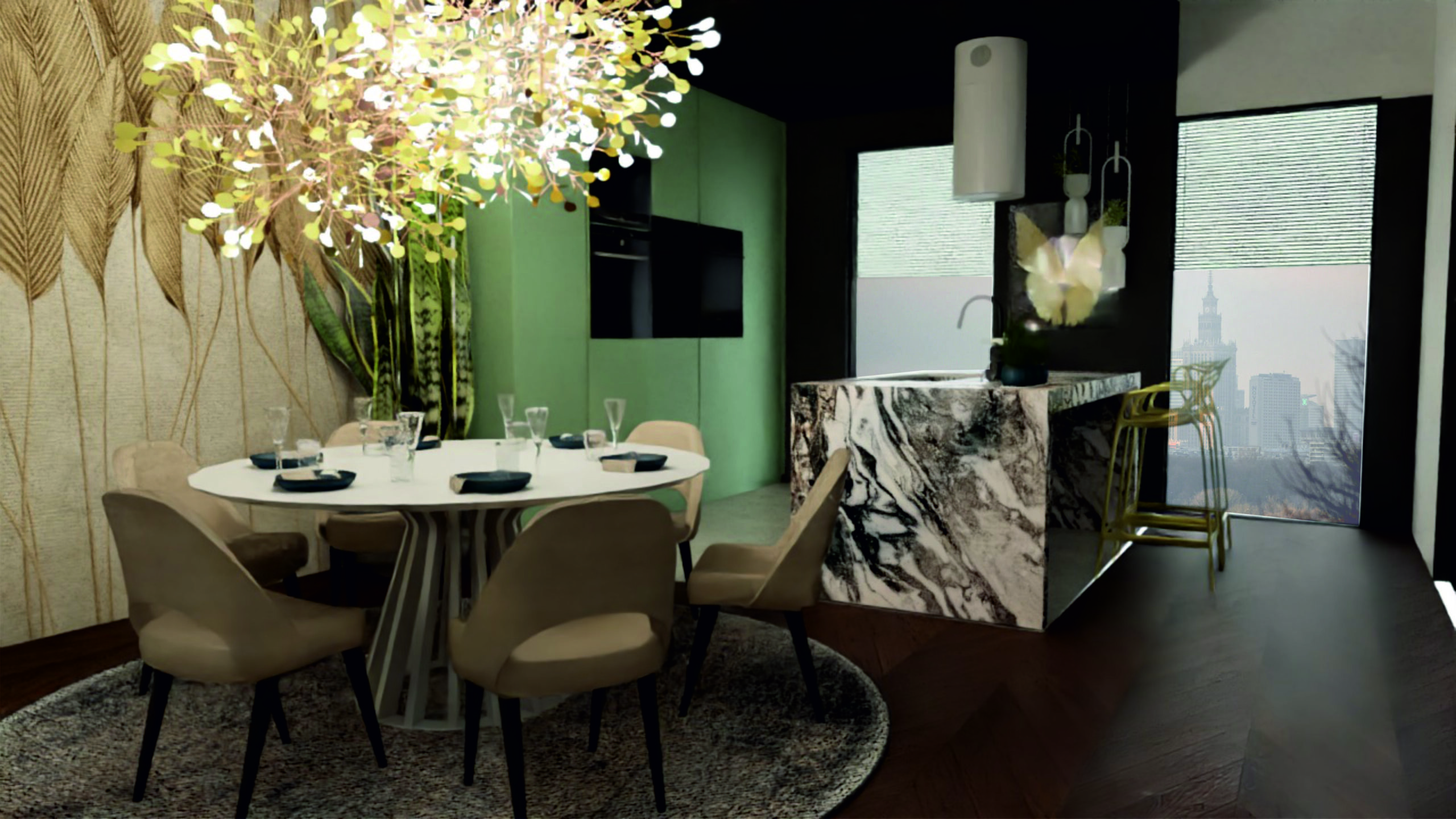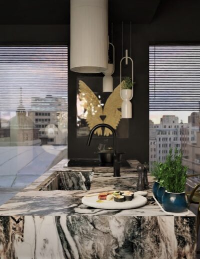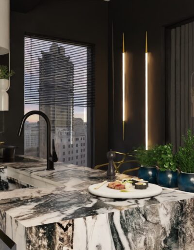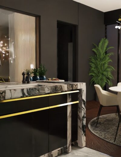 Projektując ten apartament, skupiliśmy się nie tylko na estetyce, ale także na trwałych i porządnych materiałach. Naszym celem było stworzenie przestrzeni, która nie tylko prezentuje się imponująco, ale także jest przyjazna dla codziennego użytkowania. Zapraszamy do zanurzenia się w naszym projekcie i odkrycia, jak marzenie o idealnym apartamencie w centrum Warszawy stało się rzeczywistością. Tu funkcjonalność spotyka się z luksusem, a miejski szyk przeplata się z przytulnością. Jesteśmy dumni, że mogliśmy uczestniczyć w tworzeniu tego unikalnego wnętrza, które odzwierciedla pasję i profesjonalizm naszego zespołu.